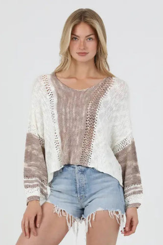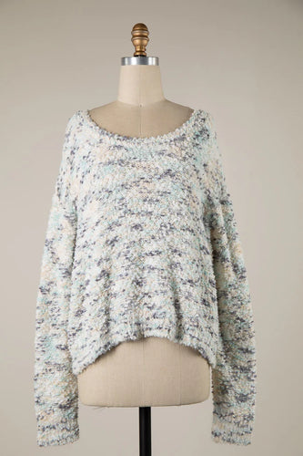 5625-MULTI TONE ROUND NECK POPCORN KNIT SWEATER
