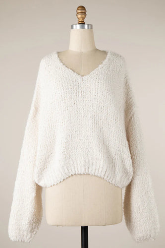 5623-Fluffy V Neck Cropped Sweater-IVORY