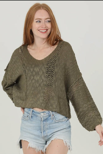 5718-Light Weight V Neck Pullover Sweater-OLIVE