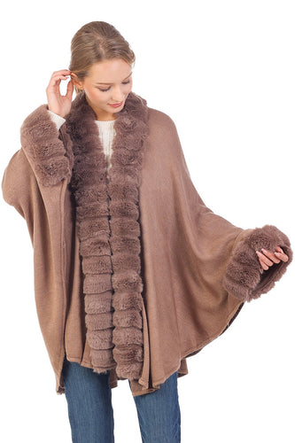5748-Luxe Faux Fur Trim Shawl Cape-MOCHA