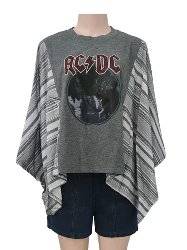 5393-Western Print Kimono Sleeve T-Shirt Oversized Tee Top-AC/DC
