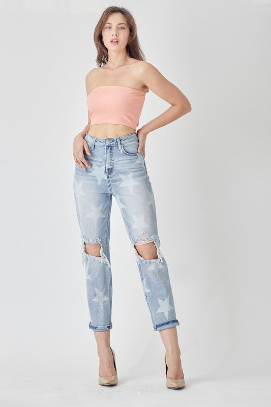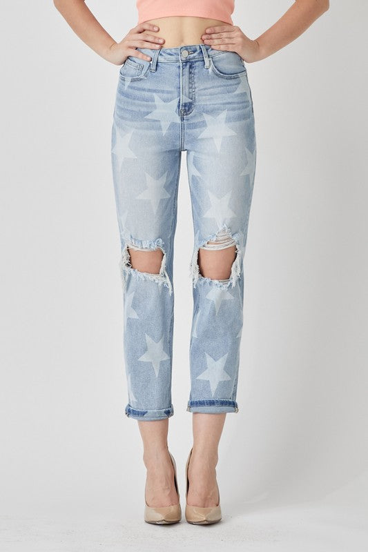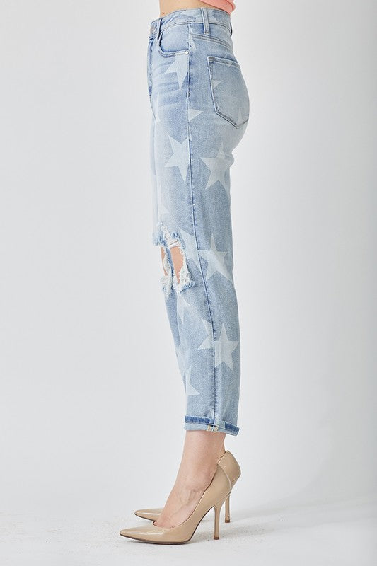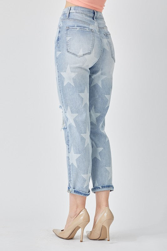 HIGH-RISE STAR PRINTED SLOUCH JEANS