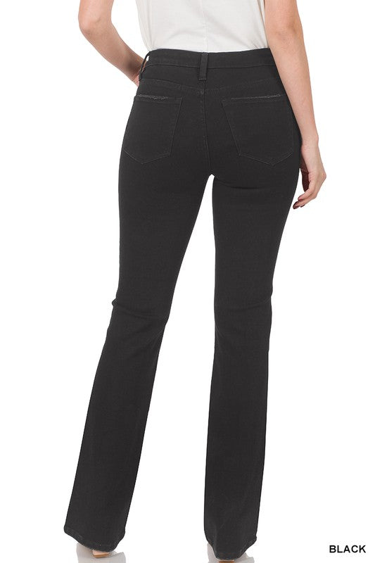 ZENANAMID-RISE BOOTCUT BLACK DENIM PANTS - GOOD QUALITY STRETCH DENIM FRONT RISE: 9.5", INSEAM: 33.5" approx.