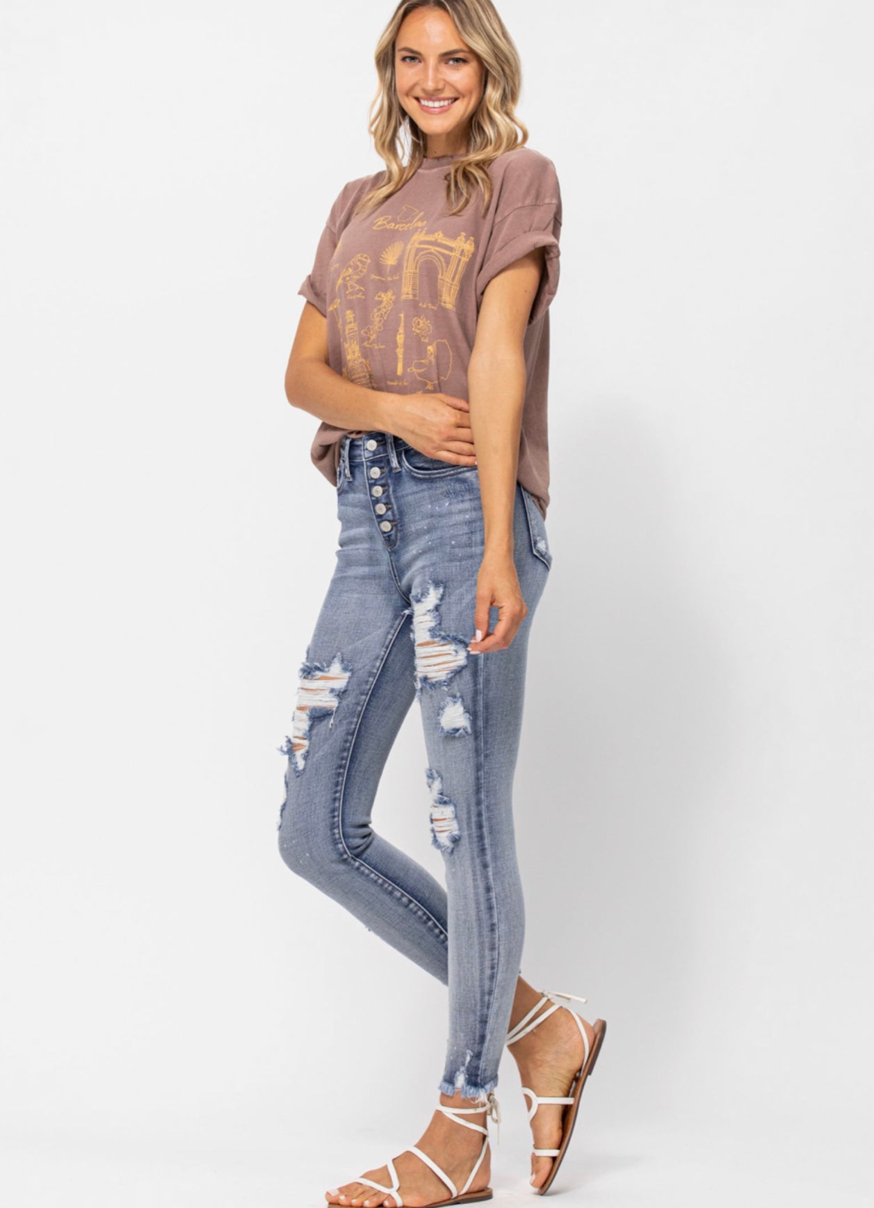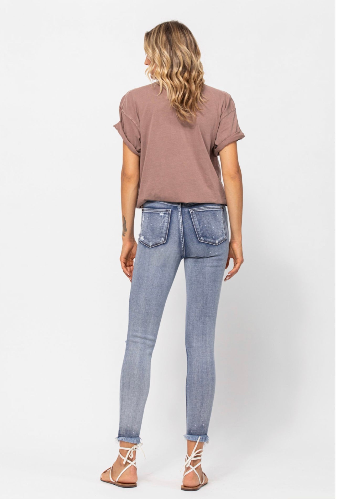 3003- HI-WAIST BUTTONFLY BLEACH SPLASH SKINNY