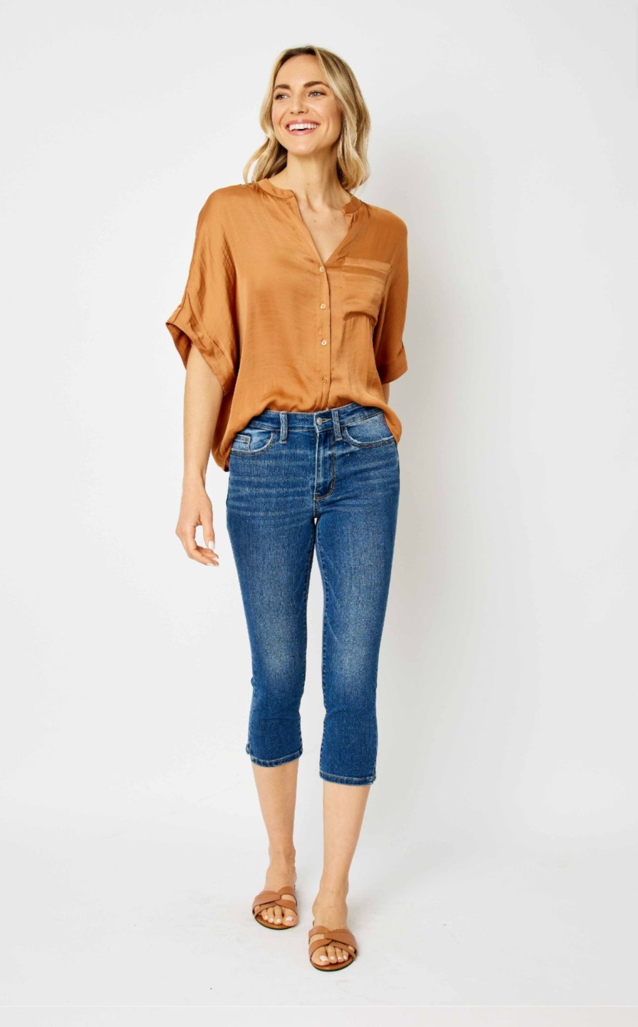 4257- JUDY BLUE MIDRISE CAPRI WITH SIDE SLIT