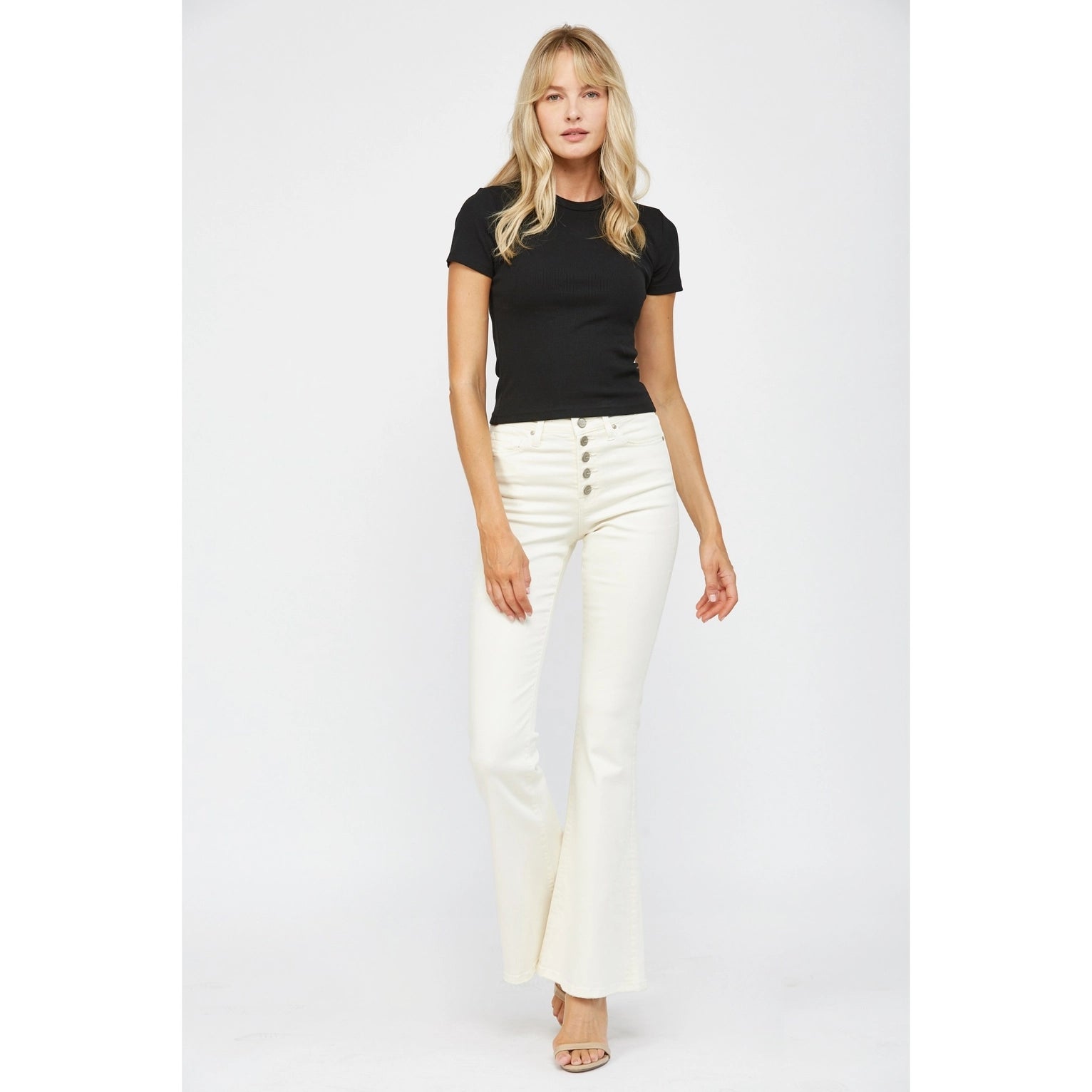 4408- MICASuper Stretch High-Rise Flare-ECRU