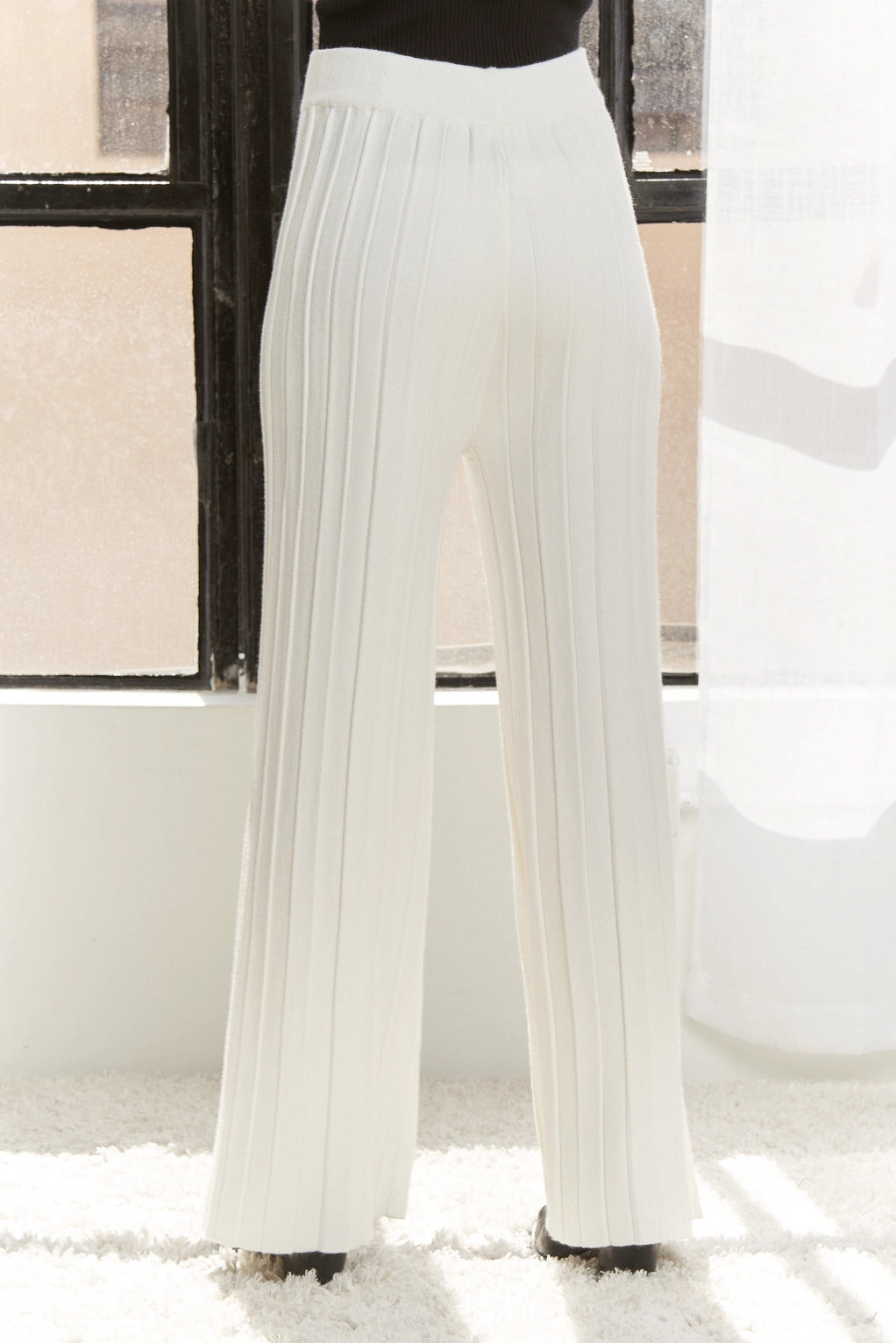 4883-WAIST TIE TEXTURE WIDE LEG KNIT PANTS -OFF WHITE