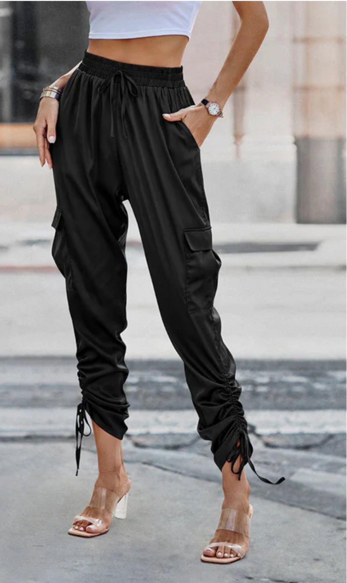 4922-Soild Pockets Ruffle Slip Sport Pant-BLACK