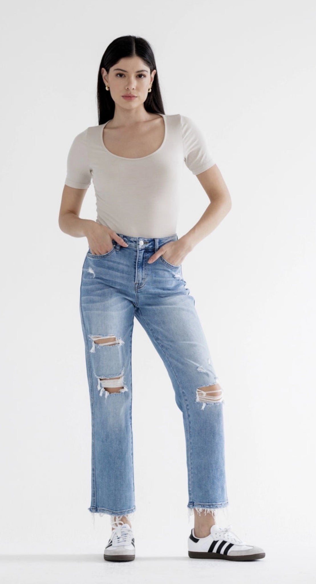 High rise straight 93.7% cotton, 5.1% poly, 1.2% span