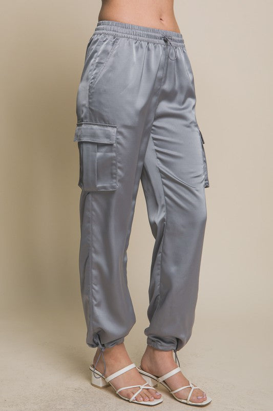 5620-Satin Full-length Pants With Elastic Waist-GREY