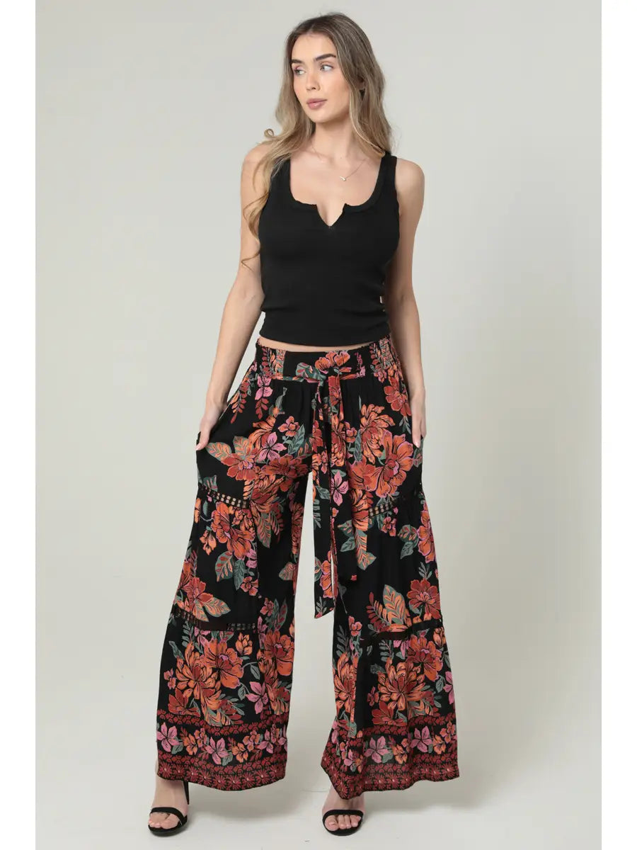 5705-Wide Leg Lace Inserts Tie Waist Pants