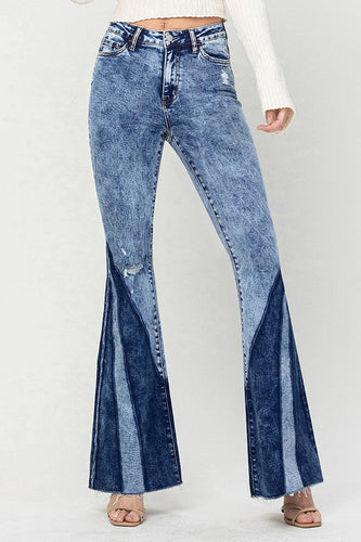 3845-HIGH RISE DISTRESSED PANEL FLARE JEANS