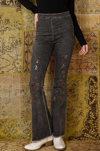 5368- POL FLARE STRETCH DENIM WITH EMBROIDERY