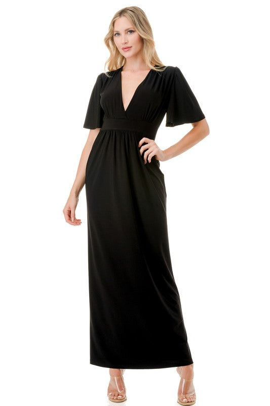 5434-Flutter Sleeve Maxi Dress-BLACK