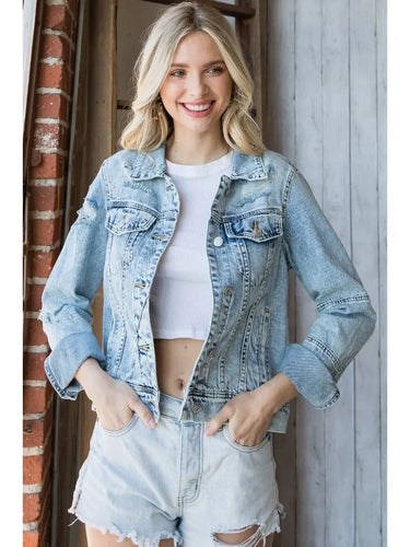 4517-Cropped Denim Jacket with Asymmetric Seam