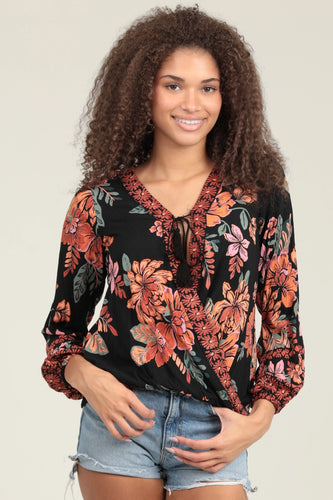 • 5445- Surplus Neckline Long Sleeve Printed Blouse