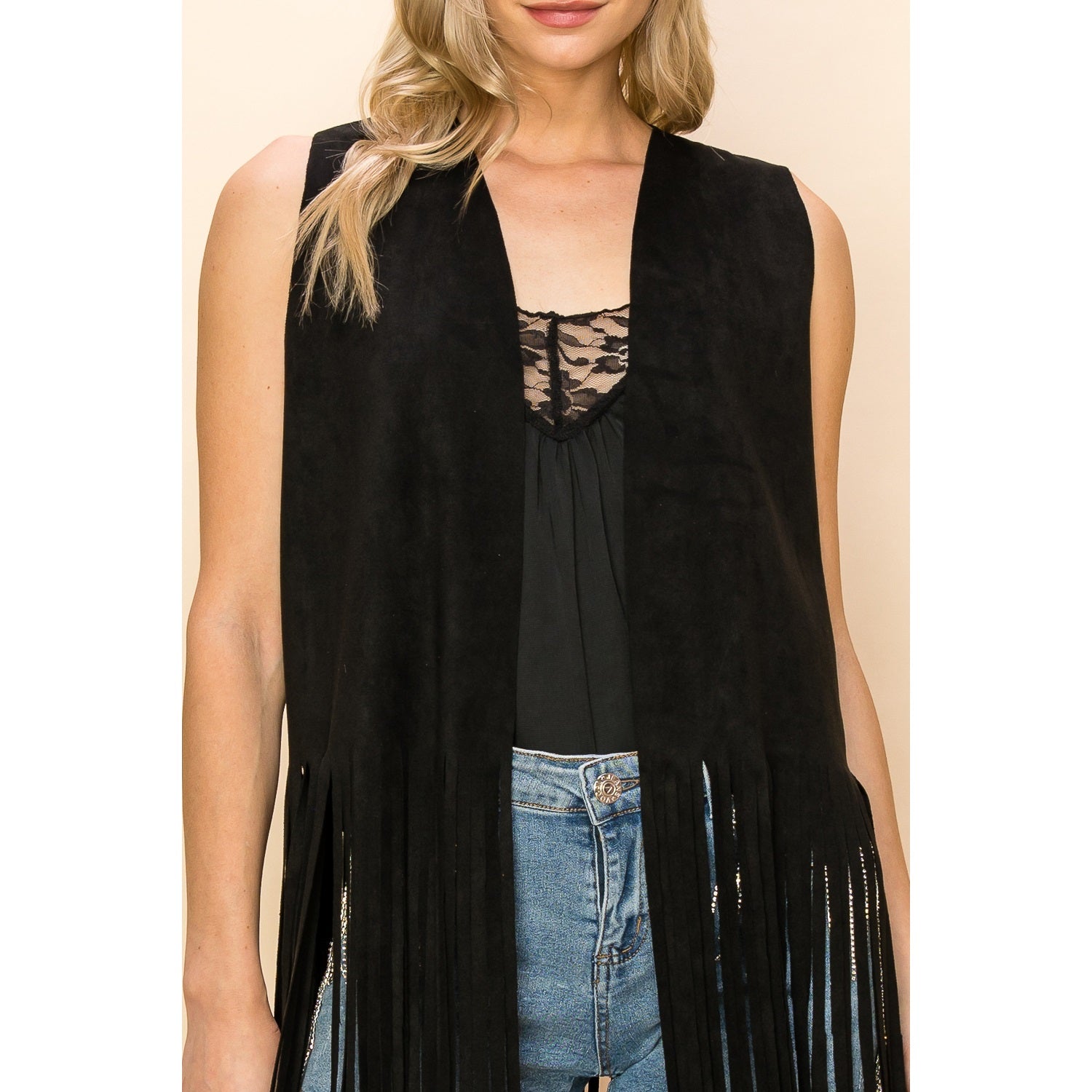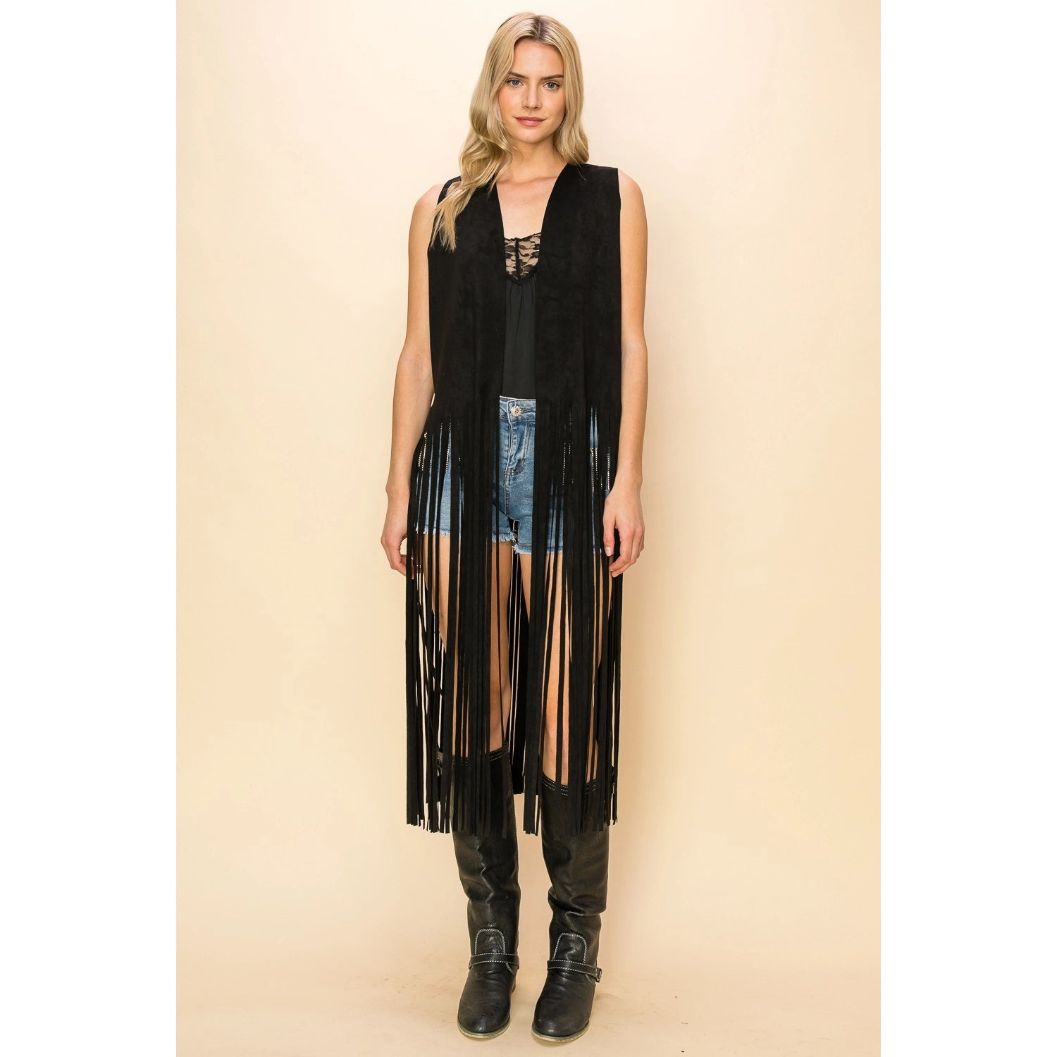 5496-Faux Suede Long Fringe Sleeveless Vest