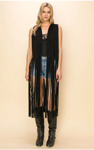 5496-Faux Suede Long Fringe Sleeveless Vest