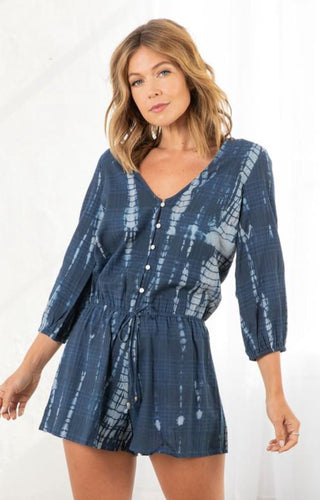 5033- L/S V-NECK TIE DYE ROMPER-INDIGO