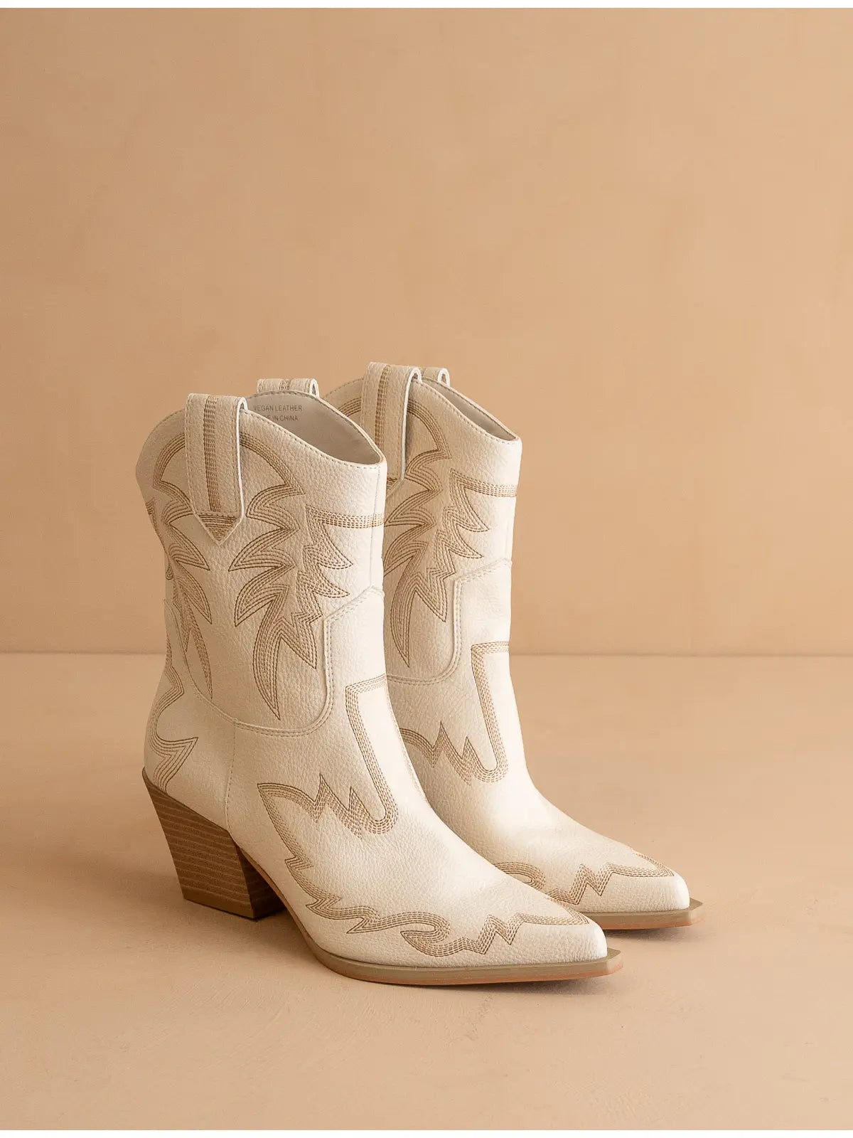 SouthWestern flair covers this cowboy boot in a gorgeous stitch pattern with thread toned to match. Game day cowgirl boots! Materials: Upper material: Vegan Leather Upper Insole Material: Padded Insole Sole or Heel Material: Printed Heel
