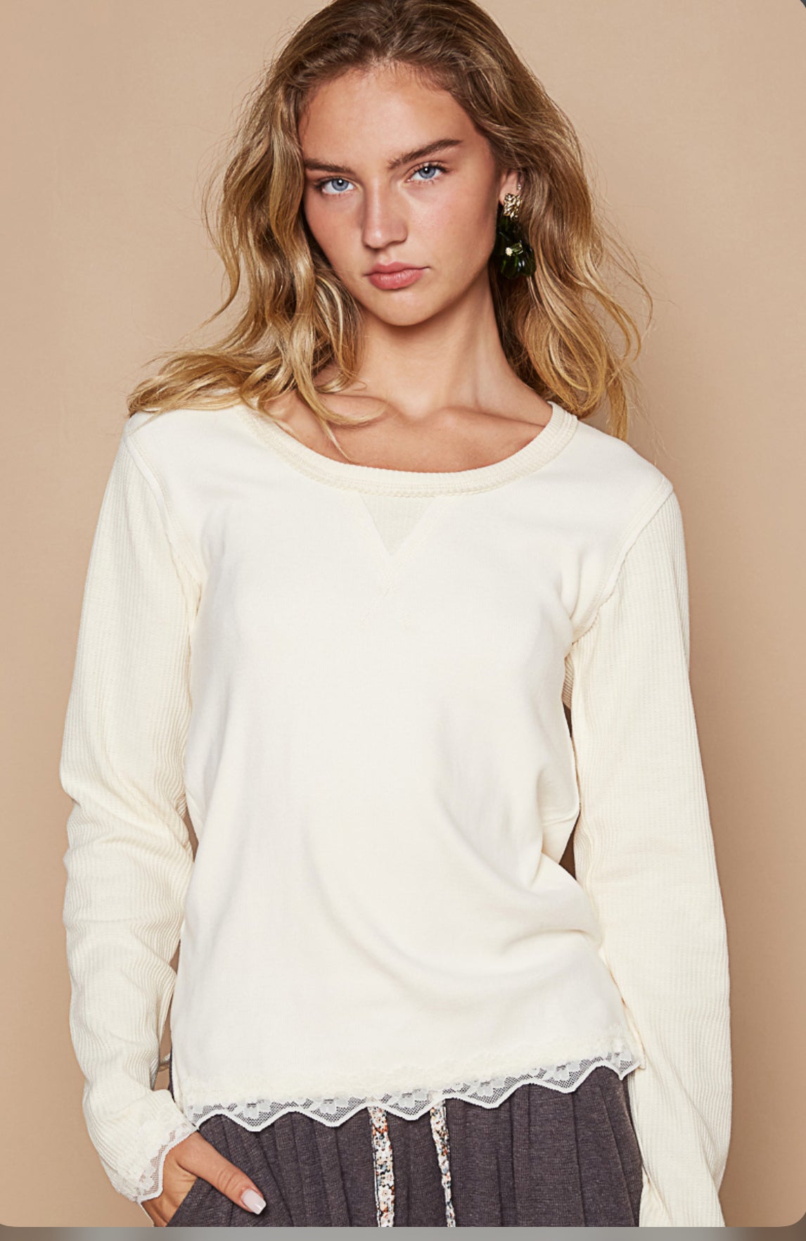 4665- POL THERMAL LONG SLEEVE TOP-CREAM