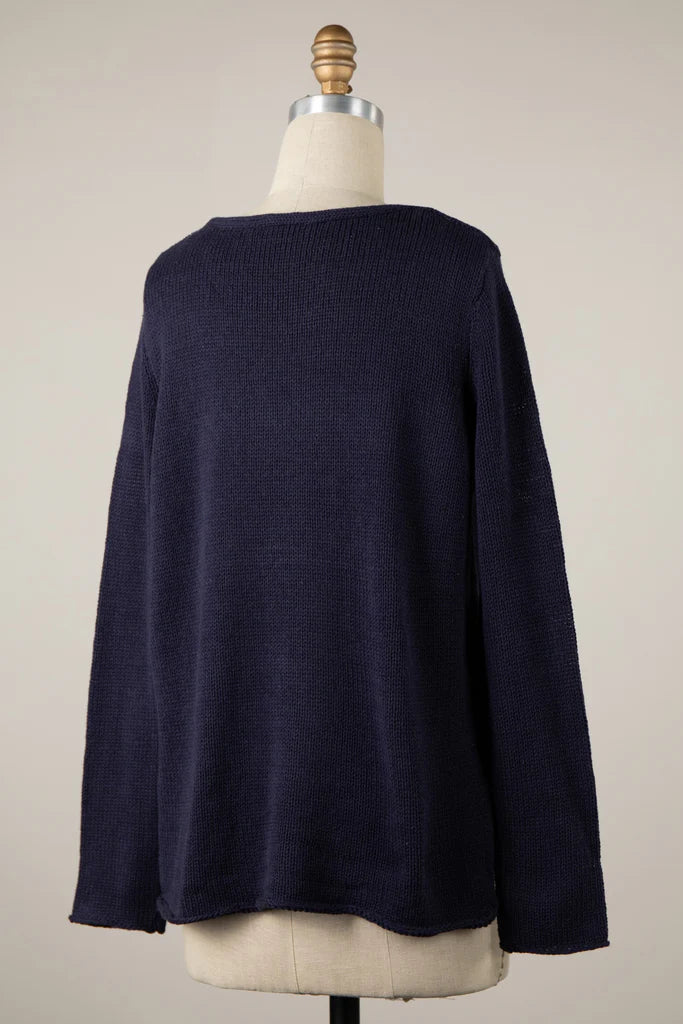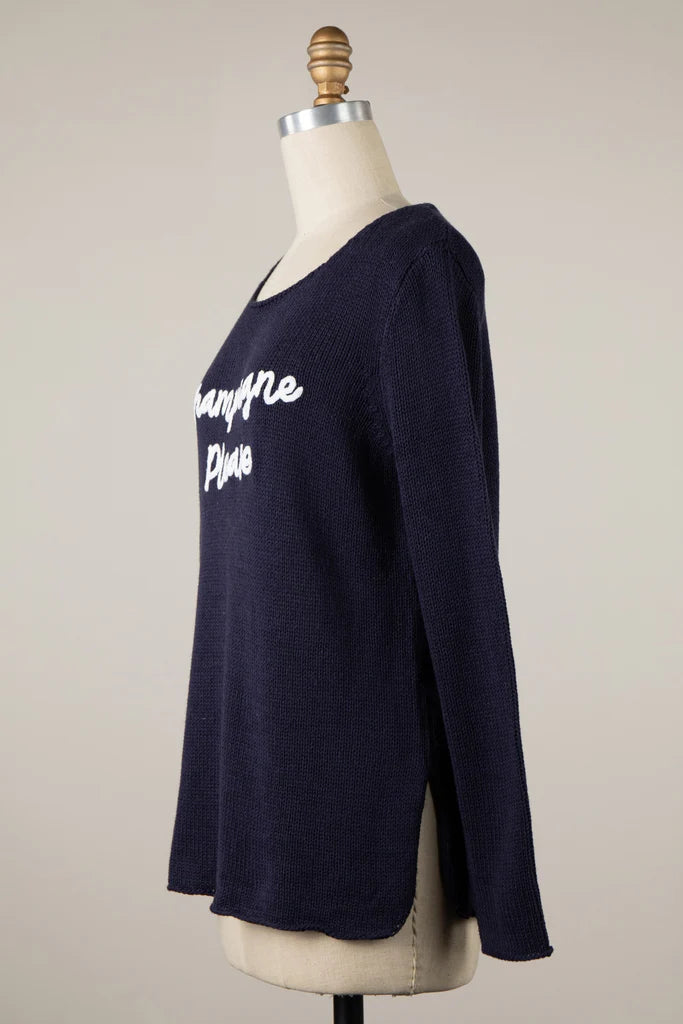 5264- CURSIVE CHAMPAGNE PLEASE SAYING SWEATER-NAVY