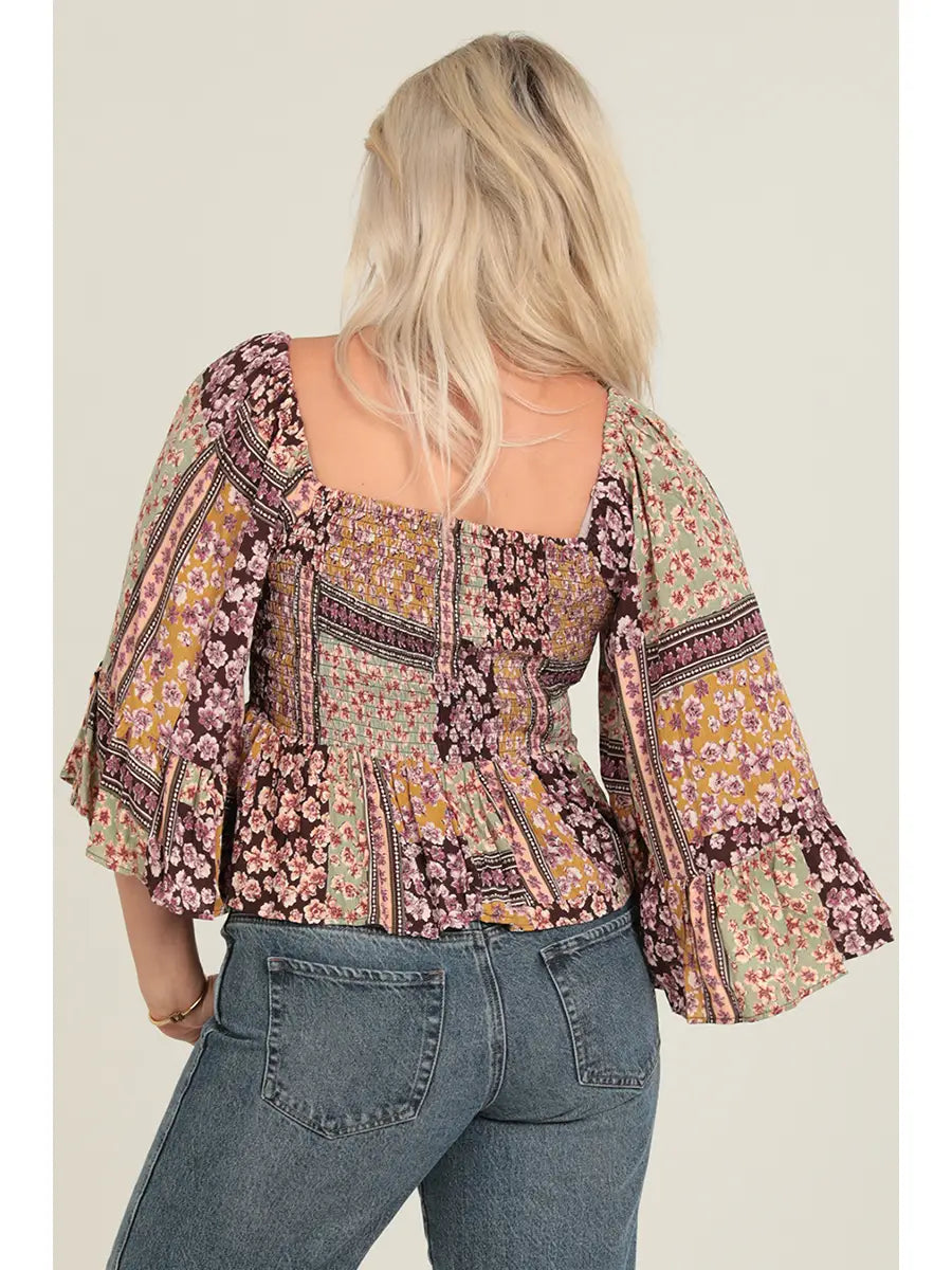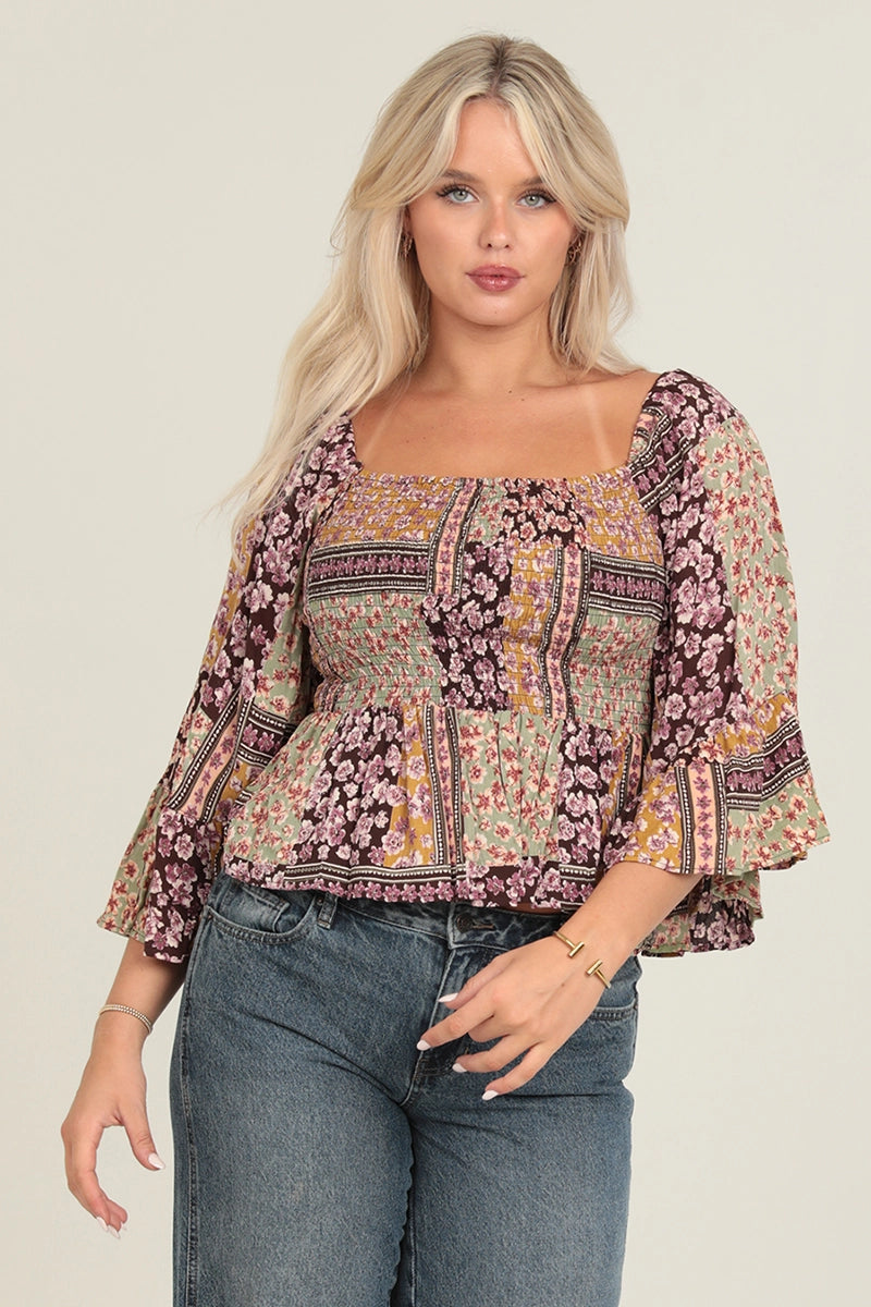 5288-Fully Smocked Bodice Top with A Wide Sleeve