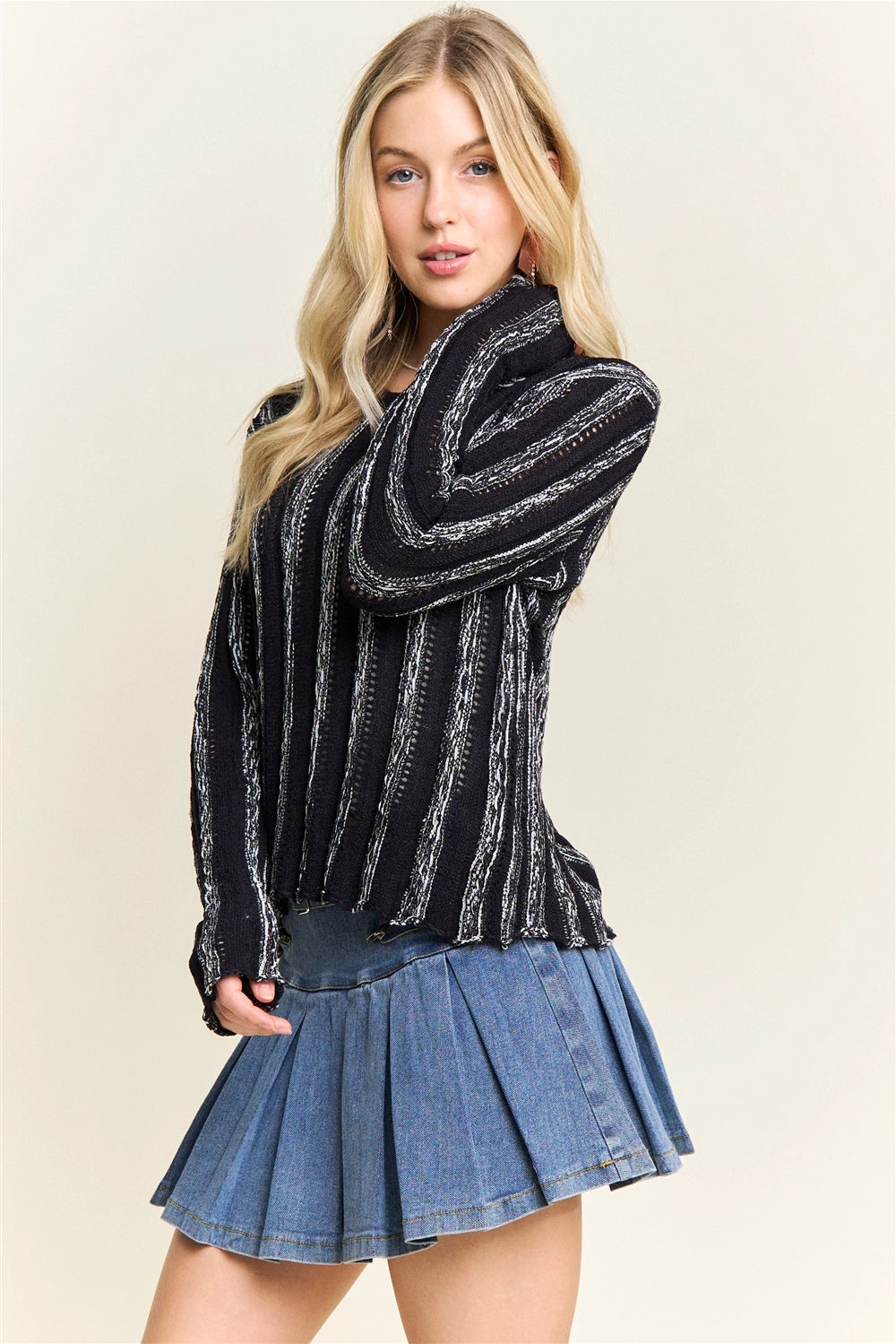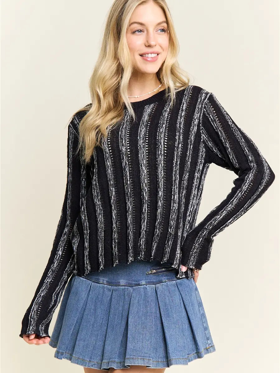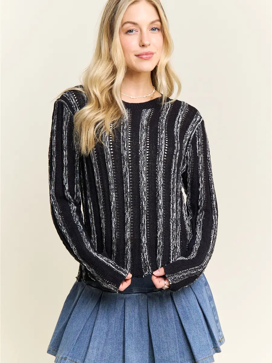 5778-VERTICAL Textured Stripe Sweater-BLACK
