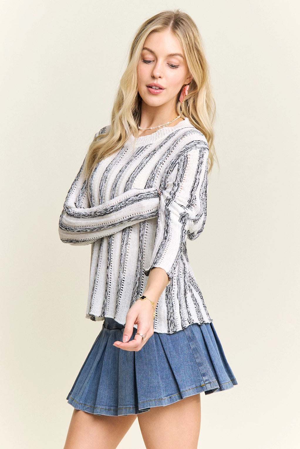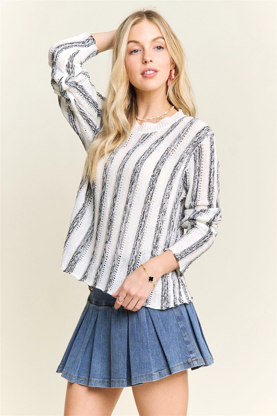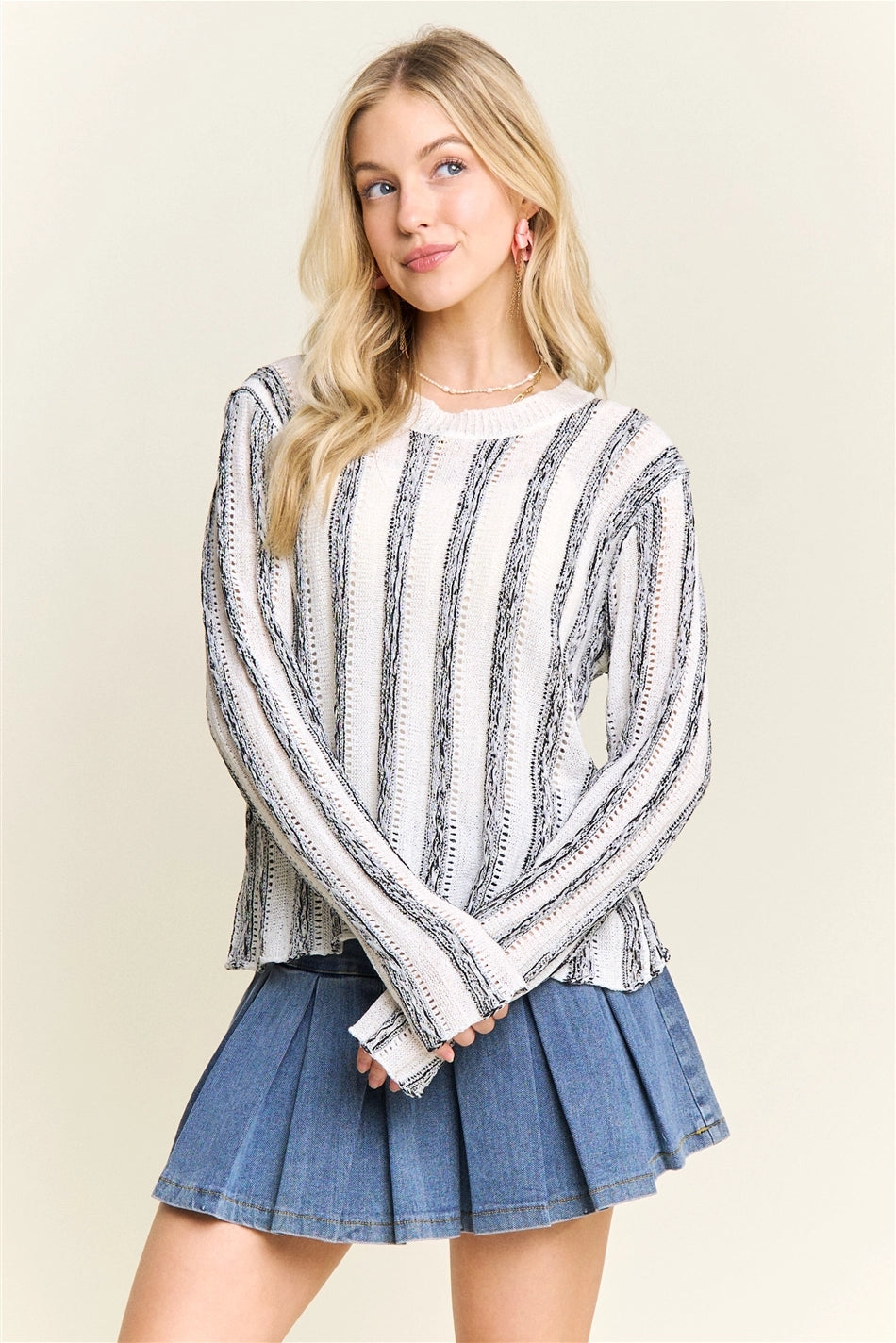 5779-VERTICAL Textured Stripe Sweater-IVORY