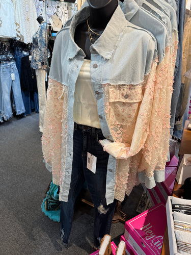 5298- LACE AND FLORAL SHACKET-PINK