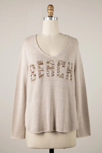 5267-MULTICOLOR LETTER BEACH SAYING SWEATER-BEIGE