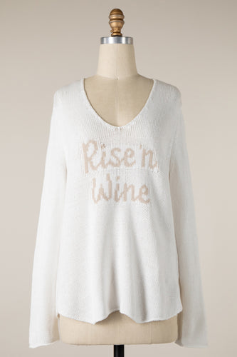 5075-Rise N Wine Saying Lightweight Knit V Neck Sweater