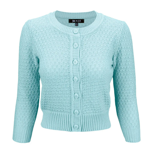 4952-3/4 Sleeve Crewneck Knit Cropped Cardigan Sweater -LIGHT BLUE