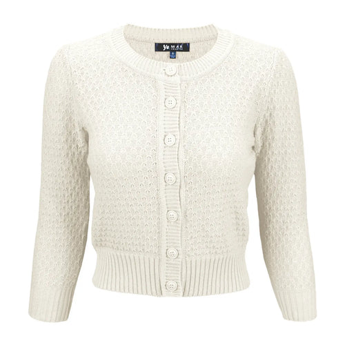 4951-3/4 Sleeve Crewneck Knit Cropped Cardigan Sweater -IVORY