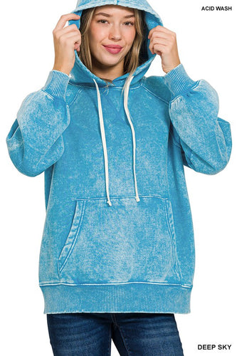 4917-ACID WASH FLEECE HOODIE WITH POCKETS-DEEP SKY
