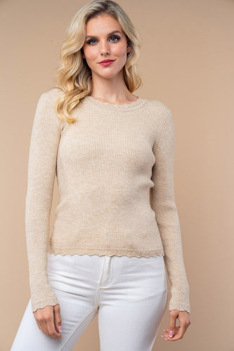 4548-Long Sleeve Solid Knit Top-OATMEAL